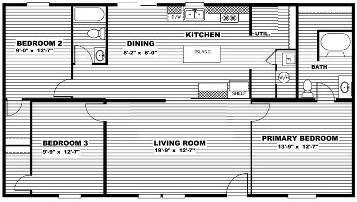 28x52 3 Bed, 2 Bath Doublewide