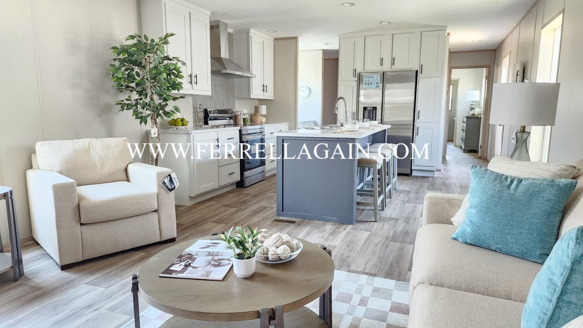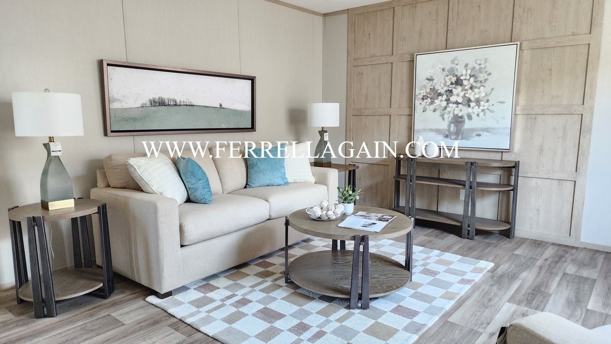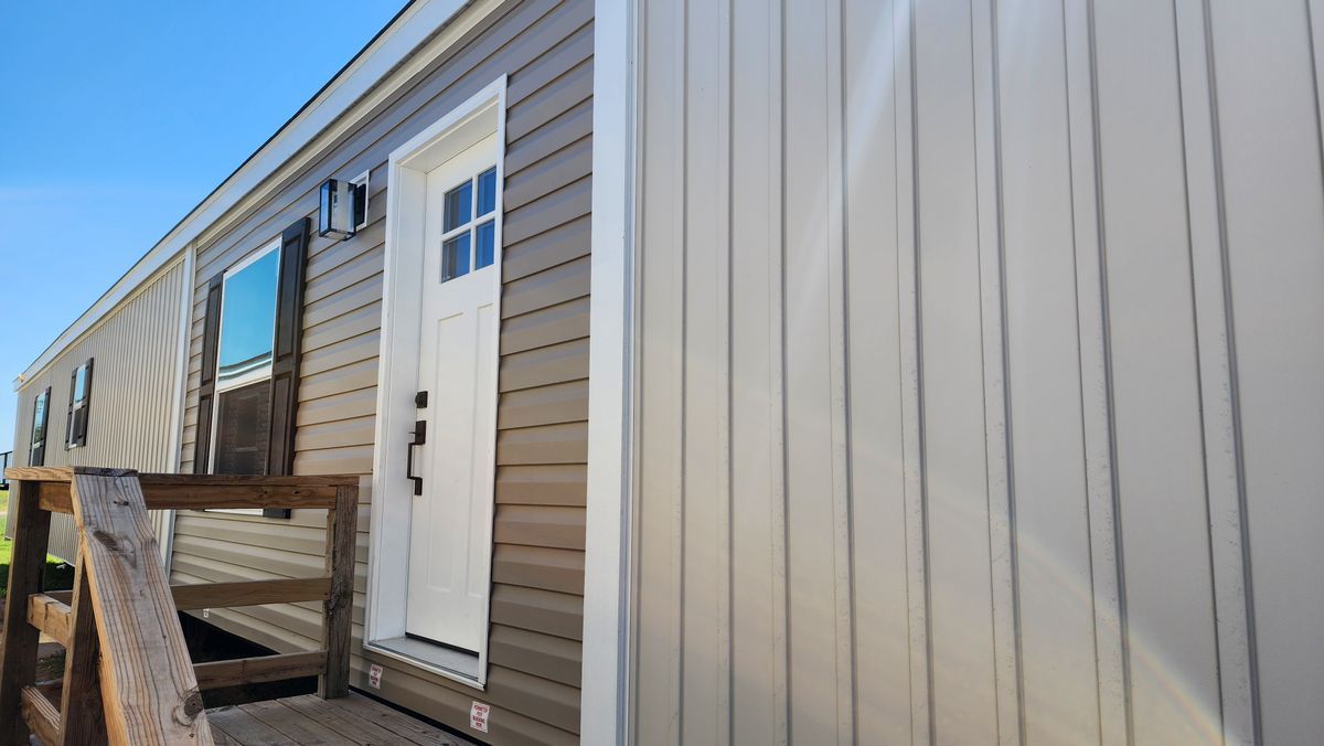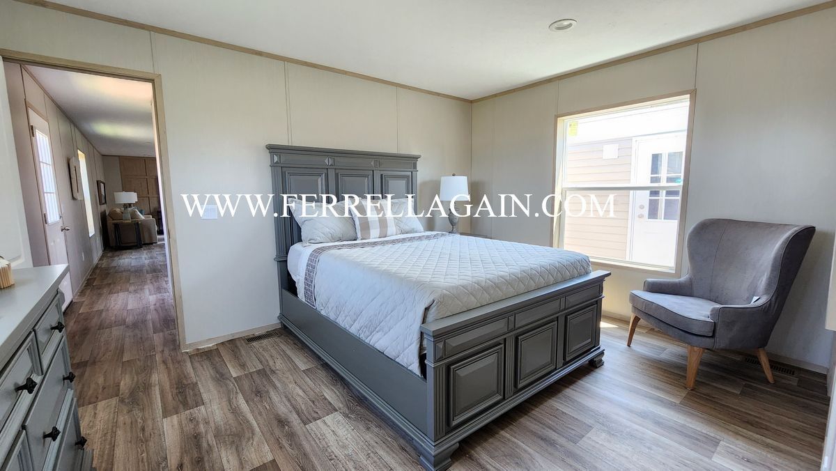 Setup with rock style skirting, water, sewer, electric hooked up, and HVAC installed!