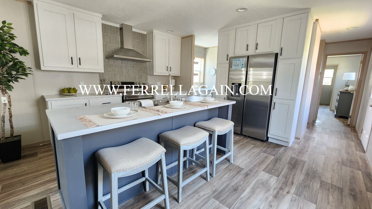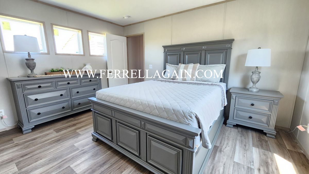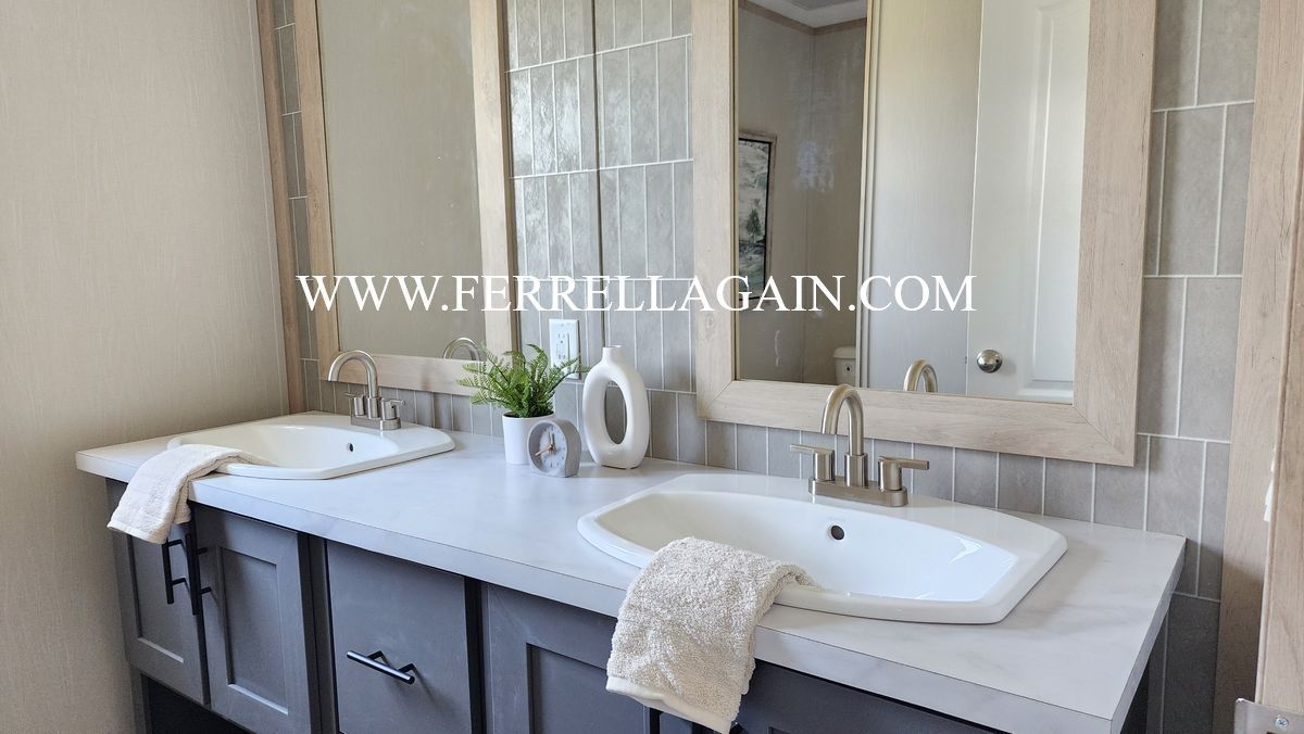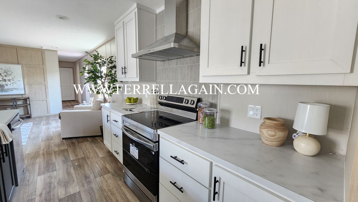 Setup with rock style skirting, water, sewer, electric hooked up, and HVAC installed!